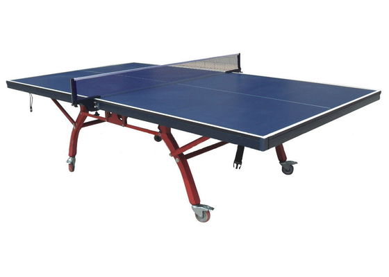 Red Leg Midsize Table Tennis Table For Recreation , Inside Ping Pong Table With Wheels